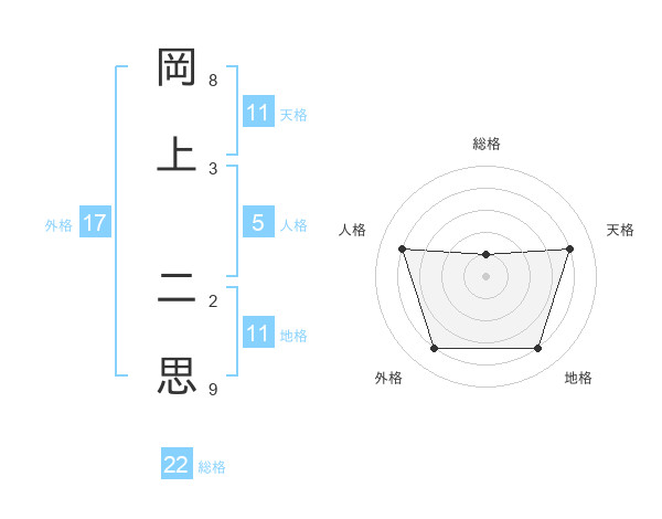 岡上 二思さんの総格は22画の1点!
