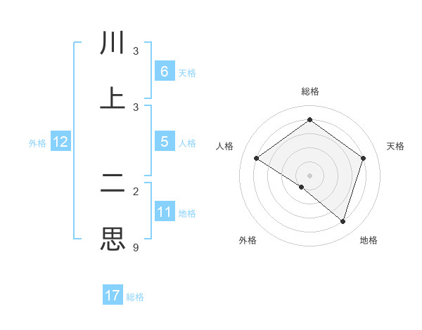 川上 二思さんの総格は17画の4点!