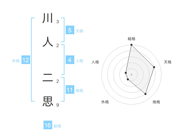 川人 二思さんの総格は16画の5点!