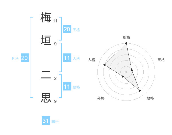 梅垣 二思さんの総格は31画の5点!