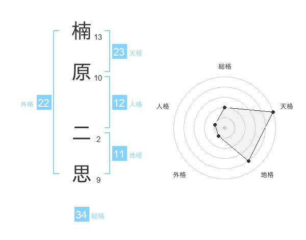 楠原 二思さんを姓名の画数から五運を鑑定