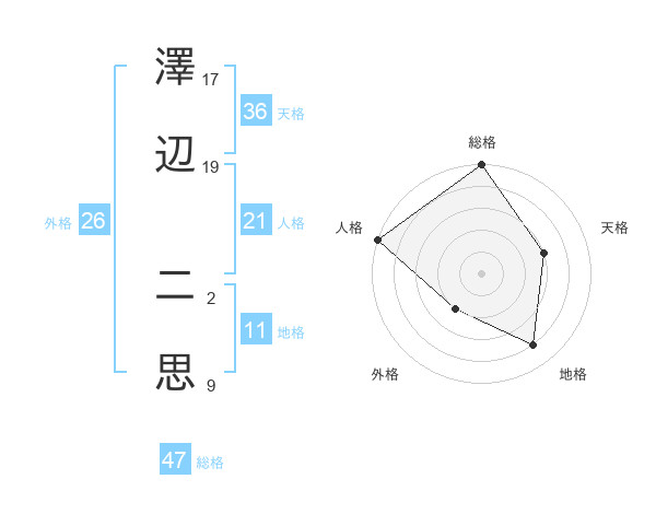 澤辺 二思さんの総格は47画の5点!