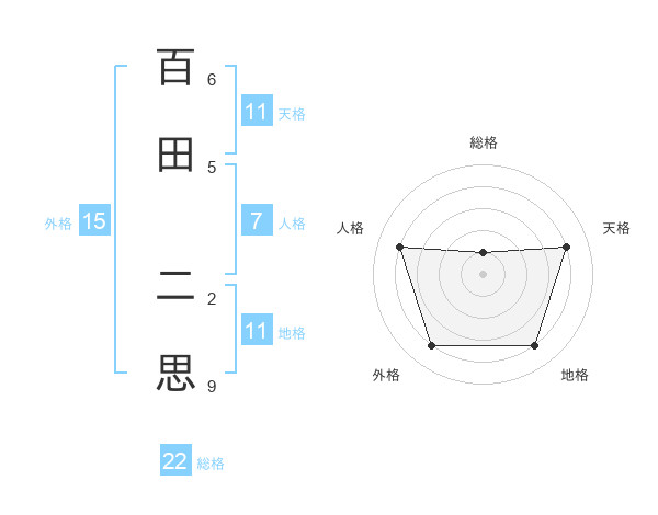 百田 二思さんの総格は22画の1点!