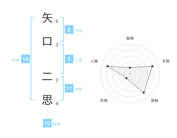 矢口 二思さんの天格は8画の4点!