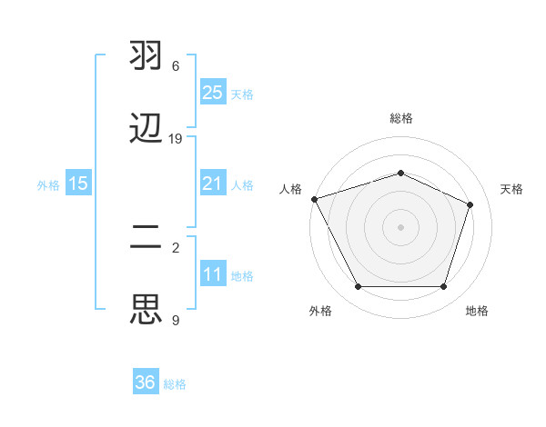 羽辺 二思さんを姓名の画数から五運を鑑定