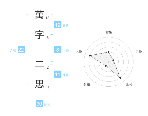 萬字 二思さんの外格は22画の1点!
