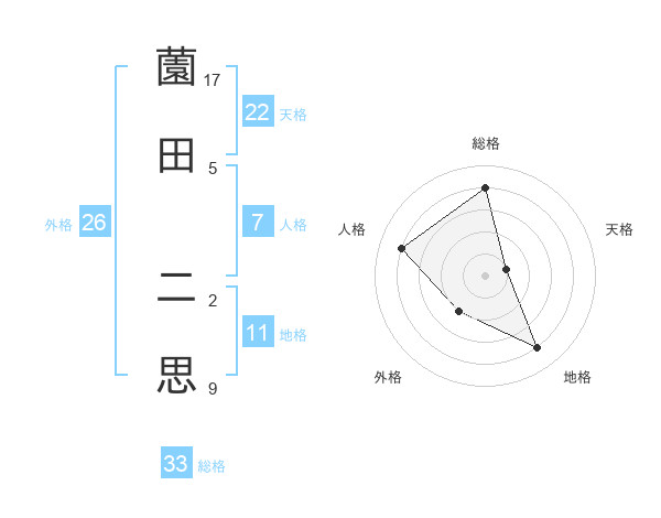 薗田 二思さんの天格は22画の1点!