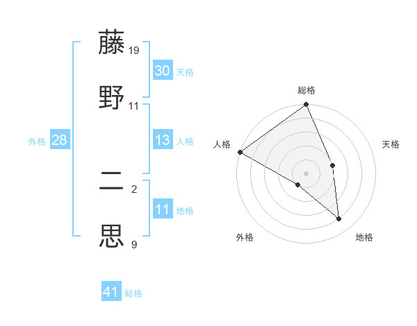 藤野 二思さんの総格は41画の5点!