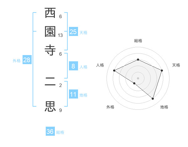 西園寺 二思さんを姓名の画数から五運を鑑定