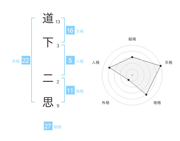 道下 二思さんの天格は16画の5点!