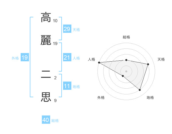 高麗 二思さんの総格は40画の2点!