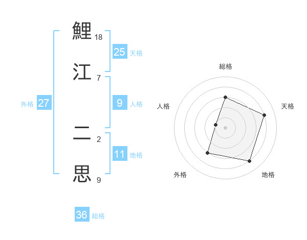 鯉江 二思さんの外格は27画の3点!