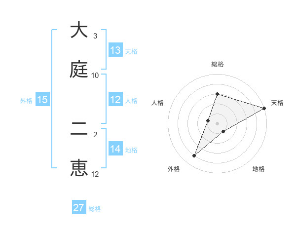 大庭 二恵さんを姓名の画数から五運を鑑定