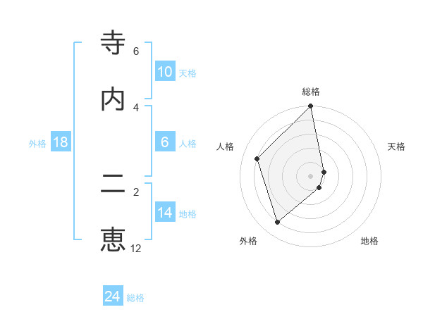 寺内 二恵さんを姓名の画数から五運を鑑定
