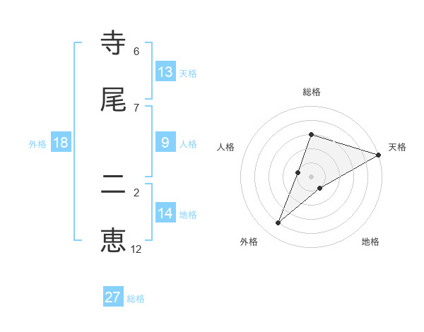 寺尾 二恵さんの天格は13画の5点!