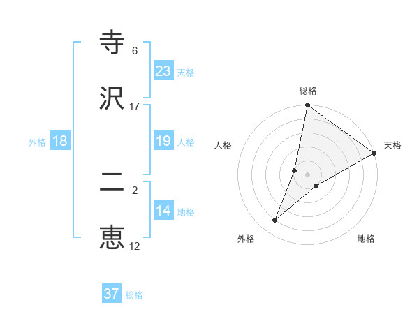 寺沢 二恵さんの天格は23画の5点!
