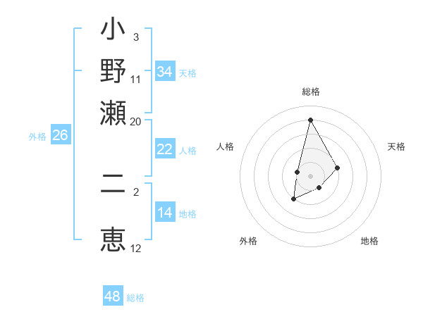 小野瀬 二恵さんを姓名の画数から五運を鑑定