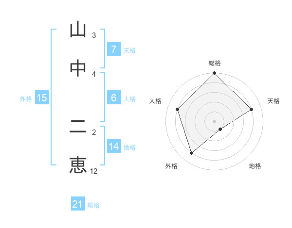 山中 二恵さんの総格は21画の5点!