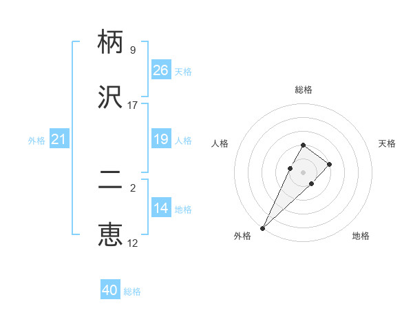 柄沢 二恵さんの外格は21画の5点!