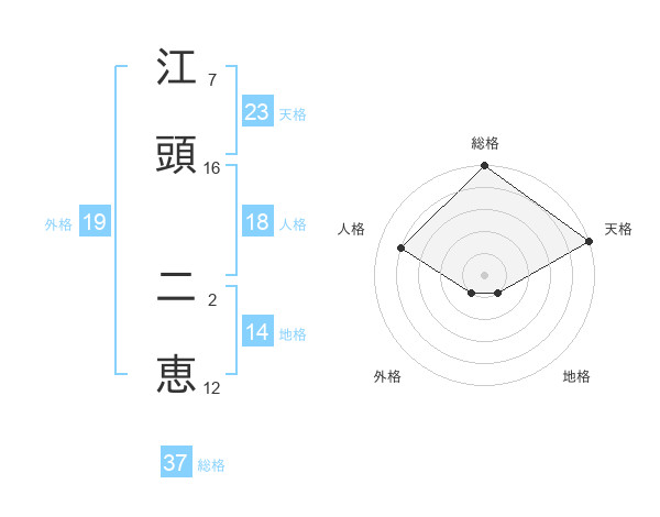 江頭 二恵さんの総格は37画の5点!