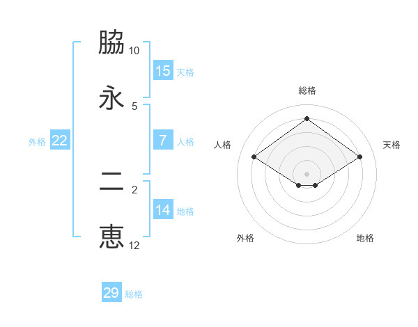 脇永 二恵さんを姓名の画数から五運を鑑定