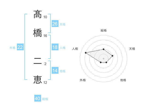 髙橋 二恵さんの外格は22画の1点!