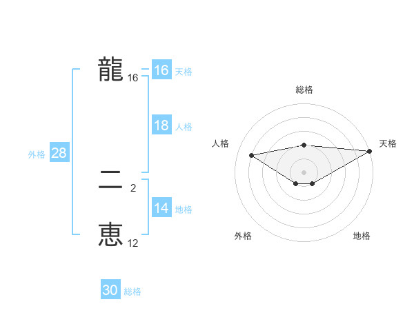 龍 二恵さんの総格は30画の2点!
