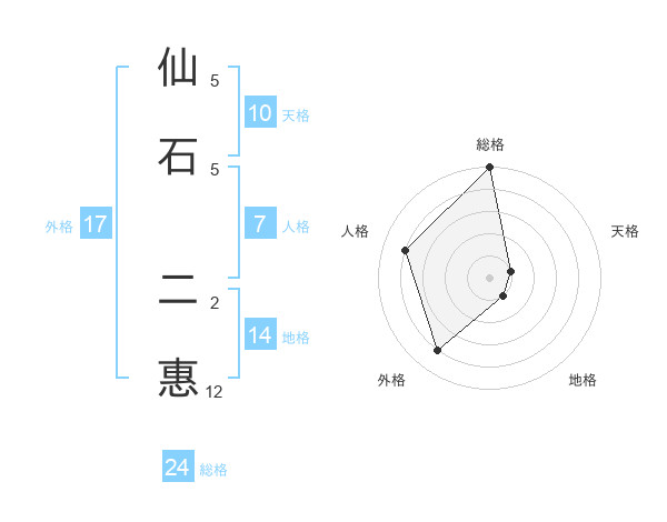 仙石 二惠さんを姓名の画数から五運を鑑定
