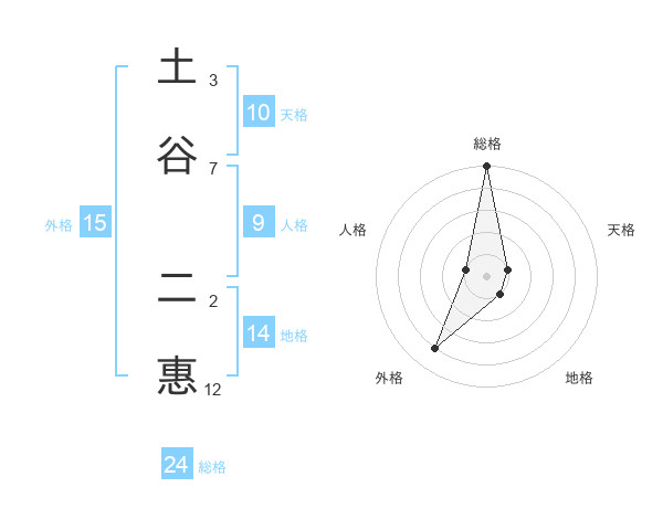 土谷 二惠さんの総格は24画の5点!
