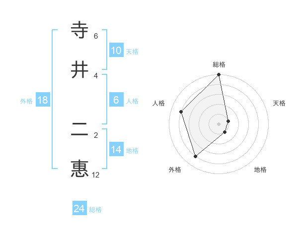 寺井 二惠さんの総格は24画の5点!