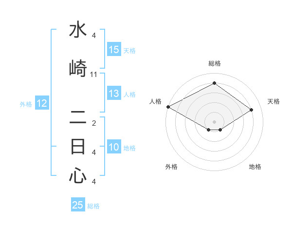 水崎 二日心さんを姓名の画数から五運を鑑定