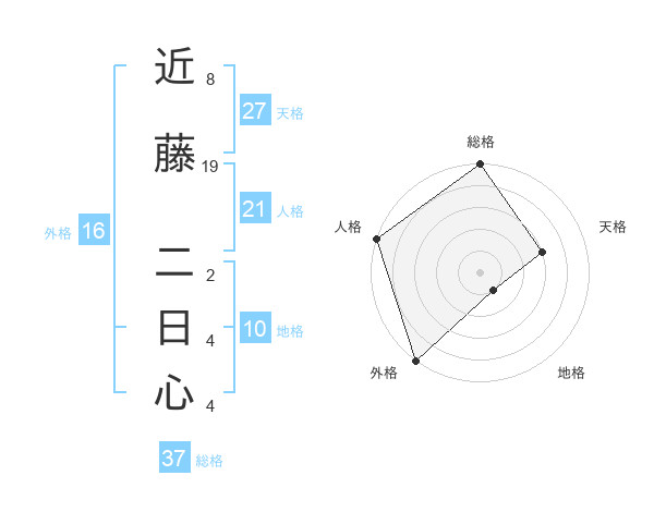 近藤 二日心さんを姓名の画数から五運を鑑定