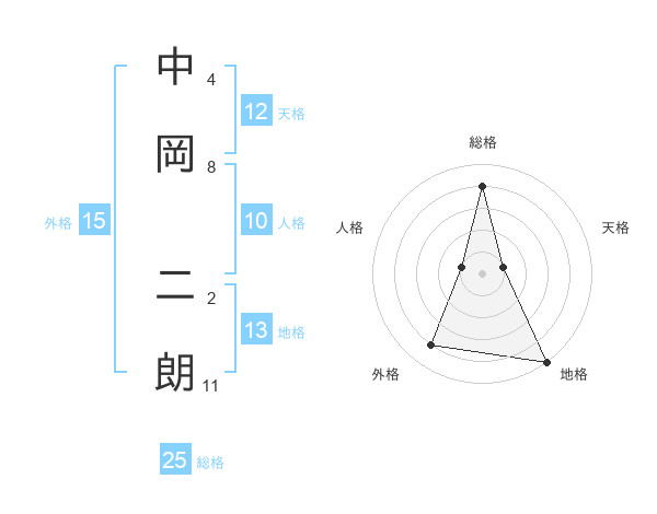 中岡 二朗さんを姓名の画数から五運を鑑定