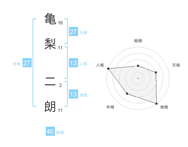 亀梨 二朗さんの総格は40画の2点!