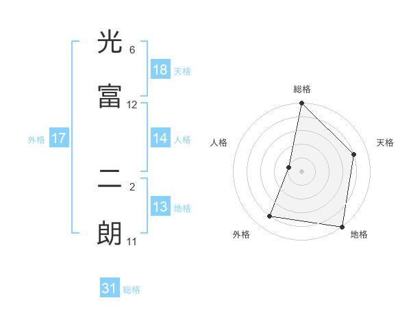 光富 二朗さんの総格は31画の5点!