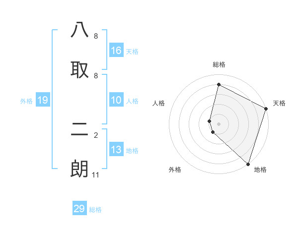 八取 二朗さんの総格は29画の4点!