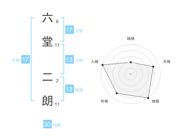 六堂 二朗さんの総格は30画の2点!