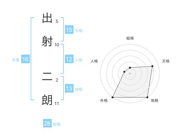 出射 二朗さんの総格は28画の1点!