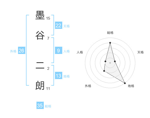 墨谷 二朗さんを姓名の画数から五運を鑑定