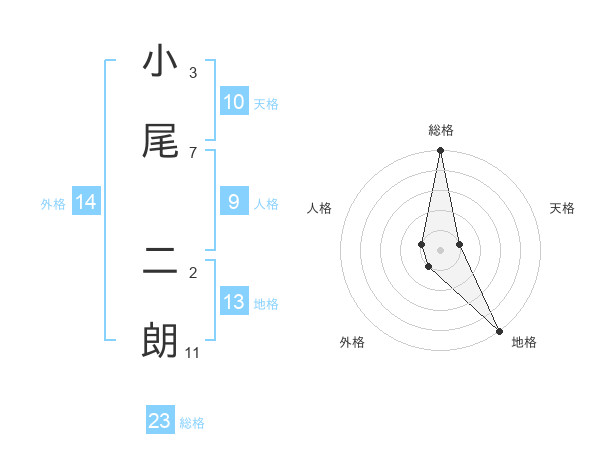 小尾 二朗さんの総格は23画の5点!