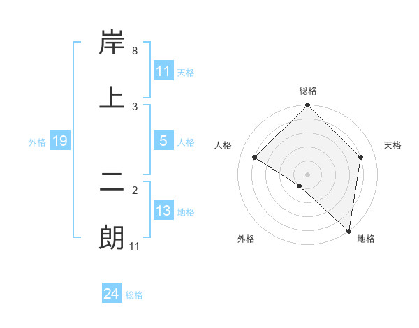 岸上 二朗さんの総格は24画の5点!