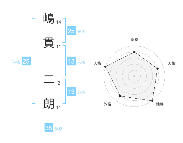 嶋貫 二朗さんの総格は38画の4点!