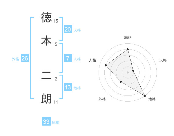 徳本 二朗さんを姓名の画数から五運を鑑定