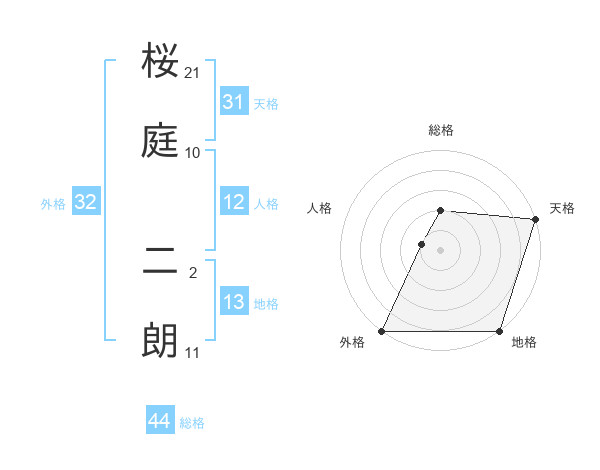 桜庭 二朗さんの総格は44画の2点!
