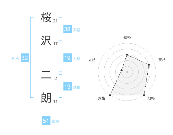 桜沢 二朗さんを姓名の画数から五運を鑑定