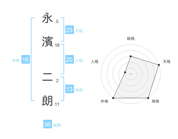 永濱 二朗さんの天格は23画の5点!