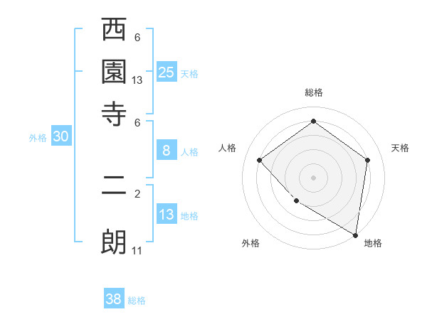 西園寺 二朗さんを姓名の画数から五運を鑑定