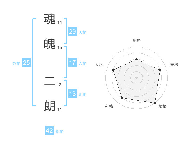魂魄 二朗さんを姓名の画数から五運を鑑定