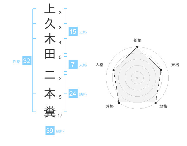 上久木田 二本糞さんを姓名の画数から五運を鑑定