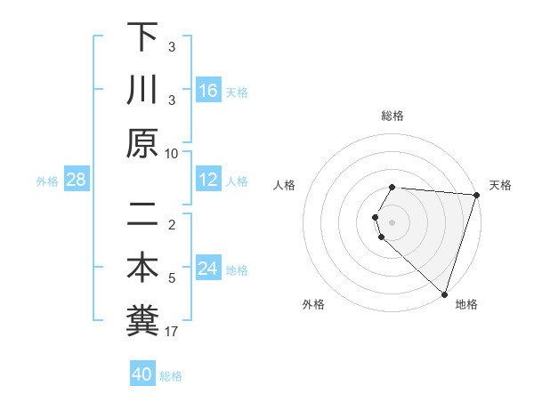 下川原 二本糞さんを姓名の画数から五運を鑑定